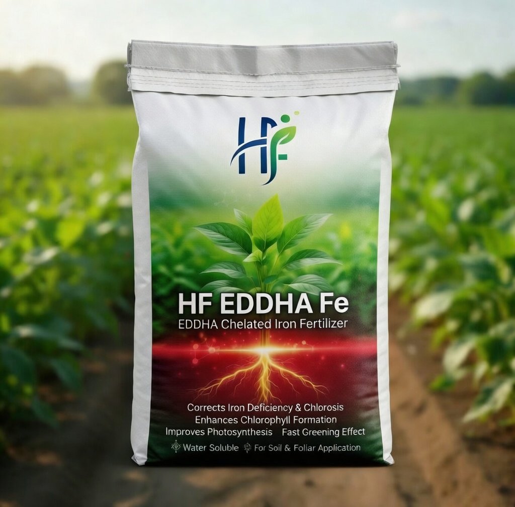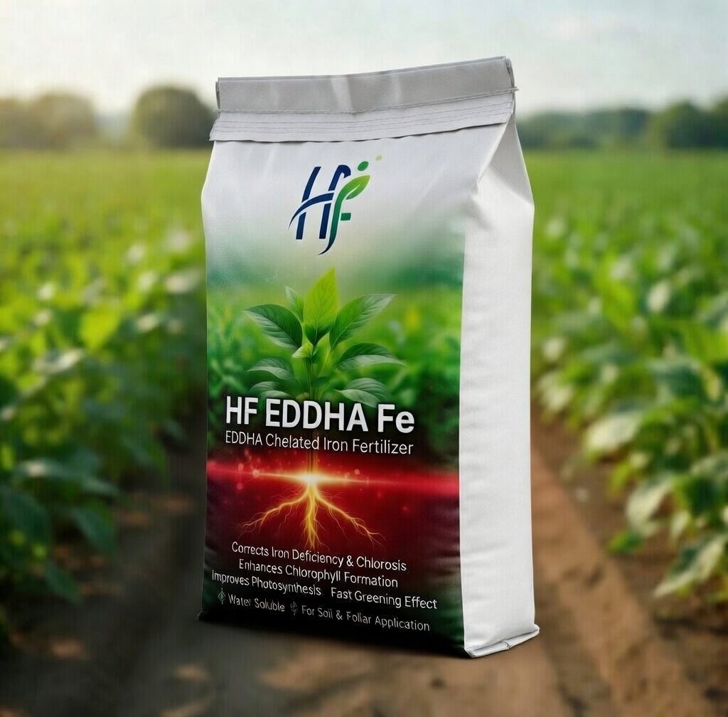 HF EDDHA Fe is a highly efficient chelated iron fertilizer formulated with advanced chelation technology, ensuring iron remains stable and available for plant uptake. It effectively prevents and corrects iron deficiency, especially leaf chlorosis.